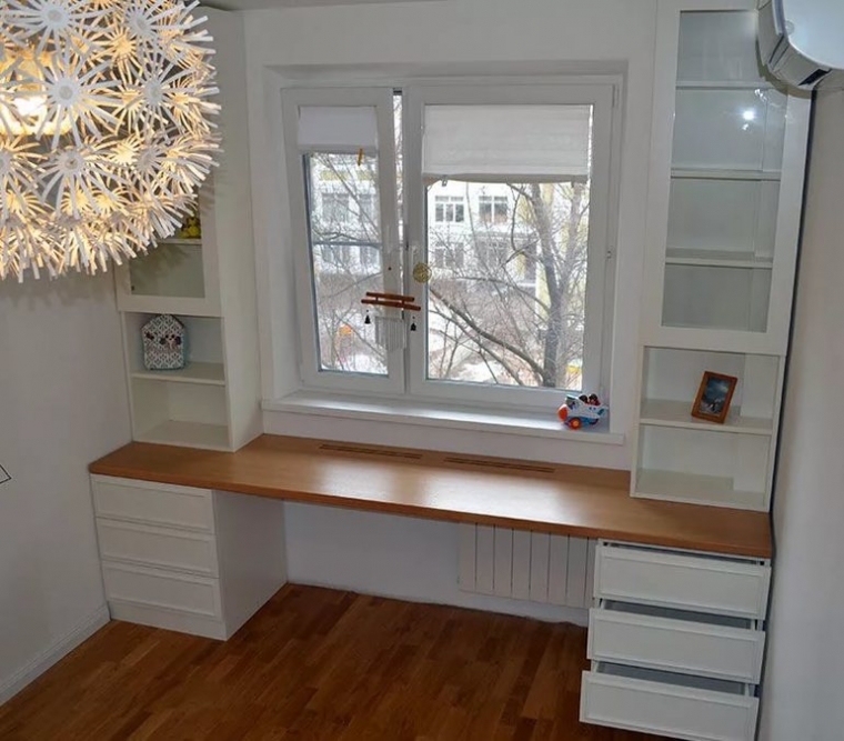 Расположить шкаф вокруг окна — это хорошая идея для практичного использования пространства.