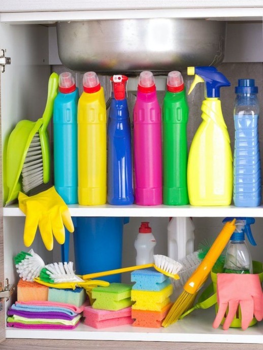 Держите все моющие средства и инвентарь в одном месте Выделите 1 контейнер, в котором будут храниться чистые тряпки для частой уборки и бытовая химия. Чтобы начать уборку вам не потребуется полчаса лазать по шкафчикам в ванной и собирать все нужное. Оно уже будет под рукой. Контейнер легко переносить с собой по квартире, чтобы ускорить процесс. Так делают все профессиональные клинеры — попробуйте, уборка действительно идет гораздо быстрее и легче.