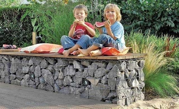 Габионы: садовая скамья