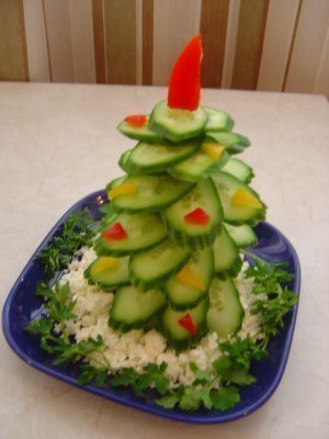 Как сделать ёлочку из огурца, чтобы украсить праздничный стол