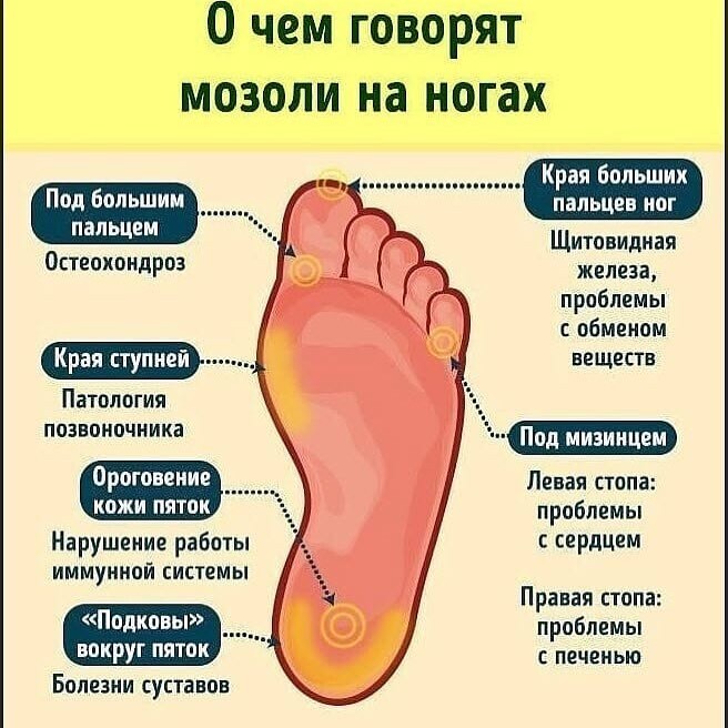 О чем говорят мозоли на ногахНа наших ступнях расположено множество биологически активных точек, которые сигнализируют о работе внутренних органов. В восточной медицине считается, ...