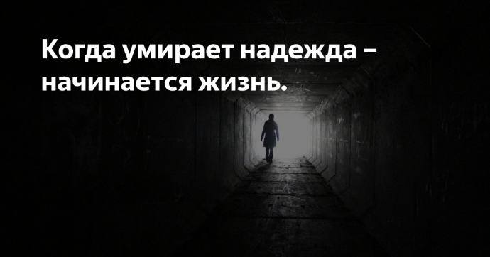 Когда умирает надежда, начинается жизнь. Жизнь настоящая, которая прямо сейчас. С признанием того, что есть. Что имею, что могу. К чему пришла. Без фантазий, ожиданий, розовых соплей. И святой веры, что когда-нибудь наступит момент и… «он вернется», «он оставит жену и будет со мной», «он начнет зарабатывать», «он сможет заработать на жилье», «он бросит пить», «он поймет, что со мной так нельзя и изменится».