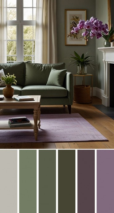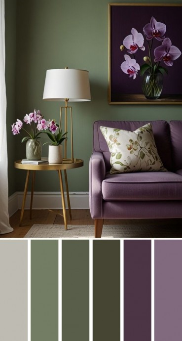 Мягкие пыльные оттенки зелёного и орхидеи — изысканная палитра, которая дарит покой и красоту.