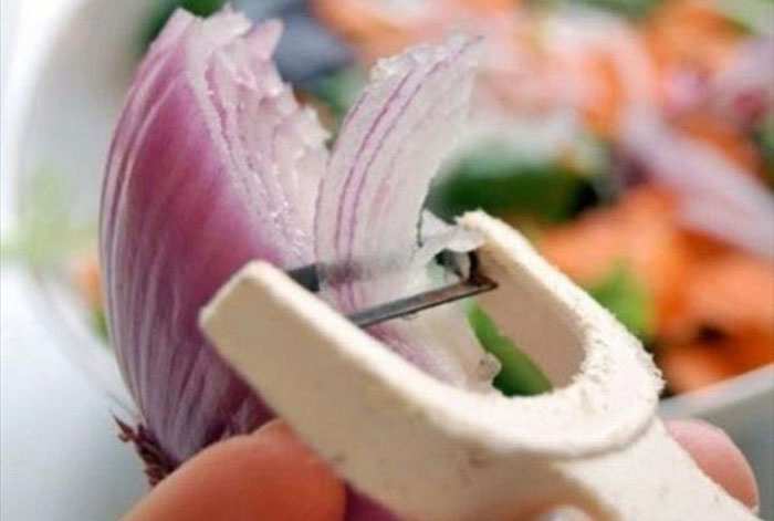 Больше никаких слёз при нарезке лука. Благодаря картофелечистке процесс становится быстрым и аккуратным, слёзы просто не успеют навернуться на глаза. Тонко нарезанный лук украсит любой салат.