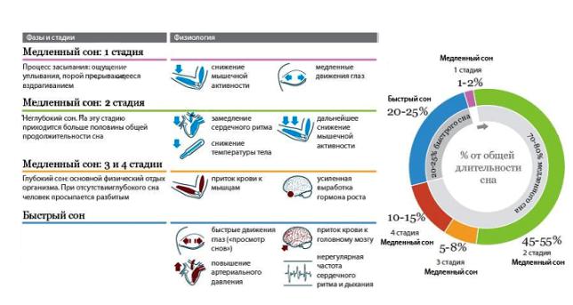 Фаза быстрого сна занимает около 20-25 процентов всего сна и наступает примерно через 90 минут после засыпания. Во время стандартного 8-ми часового сна фаза быстрого сна наступает от 3 до 5 раз.
