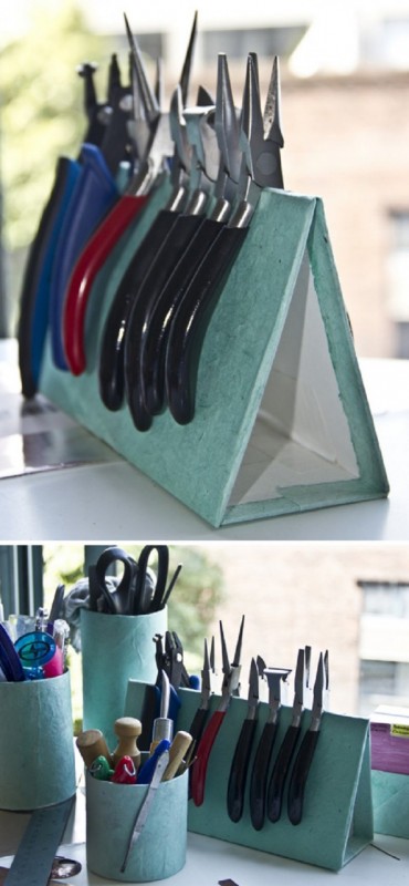 - Очень удобно хранить инструменты на столе, закрепив их на картонном стенде!