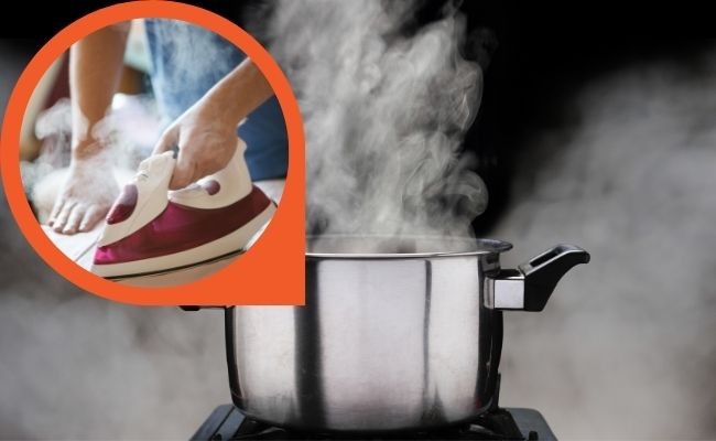 Вскипятите воду в металлической кастрюле. Как только вода закипит, слейте ее. Используйте дно кастрюли как утюг, чтобы разгладить складки на одежде. Однако убедитесь, что дно кастрюли чистое, и будьте осторожны – оно горячее.