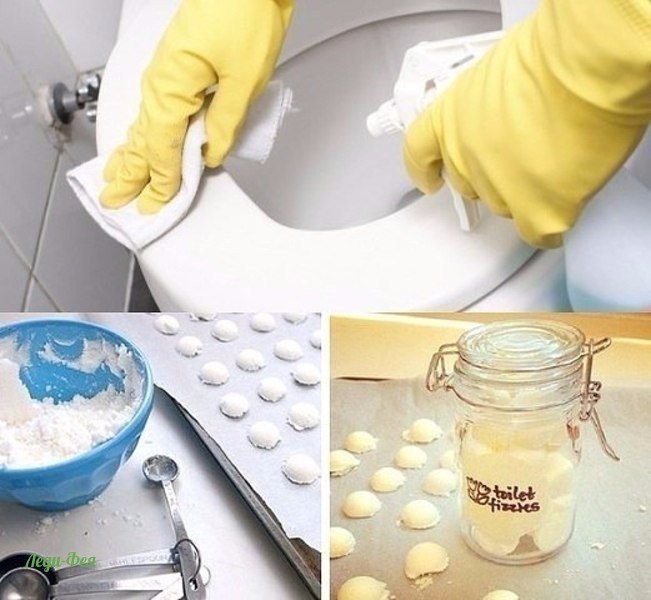 Для очищения и освежения унитаза можно самостоятельно приготовить чистящие бомбочки. Всего 1-2 бомбочки, брошенные в унитаз, дадут не только гигиенический эффект, но и приятный запах.