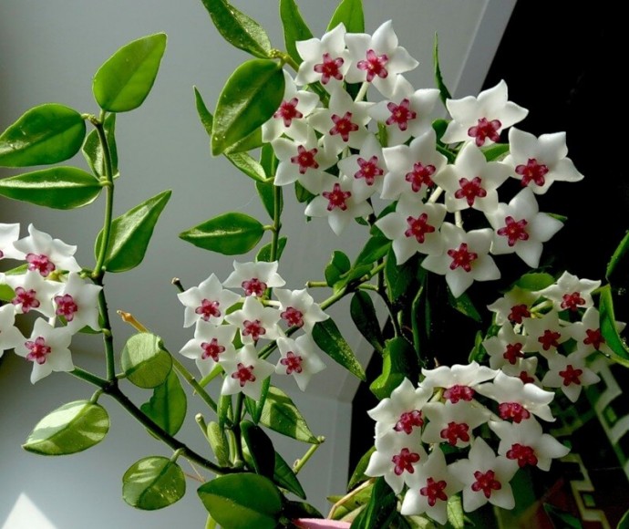 Что стоит знать про хойю (Восковой плющ) Хойя представляет собой вечнозеленую красивоцветущую лиану. При выращивании в комнатных условиях ее длина достигает не более 5–6 м. . УХОД Чтобы куст нормально рос и развивался, а также обладал высокой декоративностью, ему понадобится создать условия, которые будут очень близки к тем, что наблюдаются в тропиках. . Температура В комнате должно быть 20–30 градусов. Растению необходим свежий воздух, в связи с этим надо регулярно проветривать комнату. При жела...