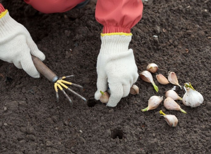 Как сажать чеснок осенью: инструкция Определите подходящий осенний день для переноса чеснока в открытый грунт: ясная и сухая погода без заморозков в прогнозе на ближайшие сутки-двое. Подготовьте посадочный материал, проведя предварительную обработку и дезинфекцию, а после приступайте к переносу в грунт. 1. Разрыхлите грядку Выполните предпосадочное рыхление грунта, если грядка была подготовлена заранее и земля успела осесть. Это можно сделать с помощью лопаты, копая на небольшую глубину, либо граб...