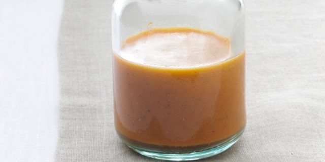 Разрежьте зубчики чеснока пополам. Измельчите все ингредиенты, кроме оливкового масла, в блендере до состояния пюре. Затем, взбивая, постепенно вливайте масло.