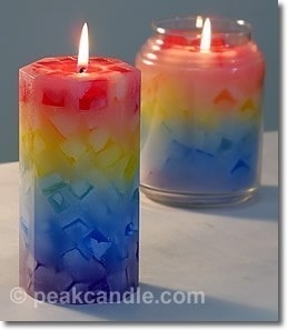 Есть еще один способ – когда парафин расплавлен и снят с огня, в него добавляют пищевой краситель и быстро размешивают.Но лучше применять жировые красители: они отлично растворяются в парафине и дают ровные насыщенные тона.