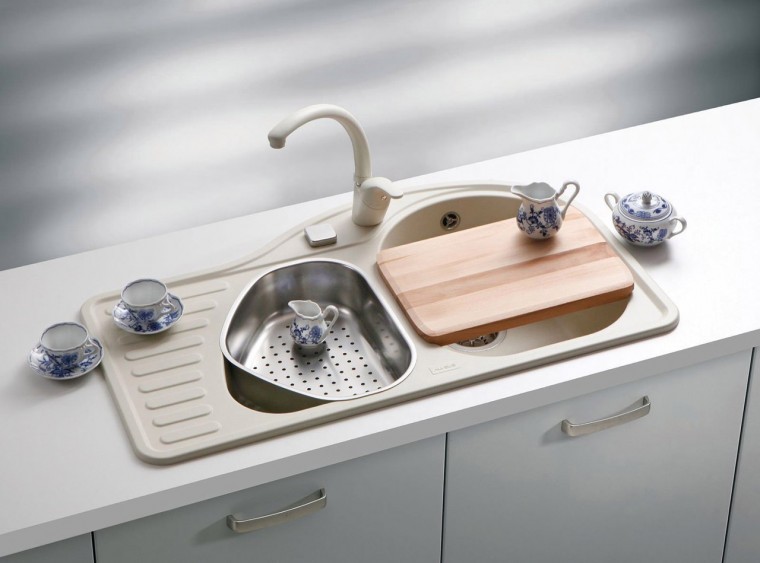 Здесь все зависит от ваших предпочтений и стиля оформления кухни. Мойка может иметь круглую, квадратную, прямоугольную, овальную, угловую форму, а также их сочетания. Самая просторная для работы - круглая.