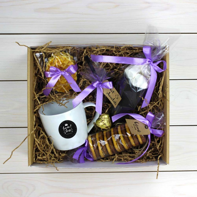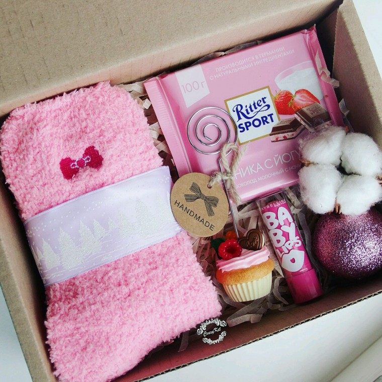 2. Можно подбирать в одной тематике. Например, чашку, жевательную резинку, конфеты, лак и открытку с надписями "Love".