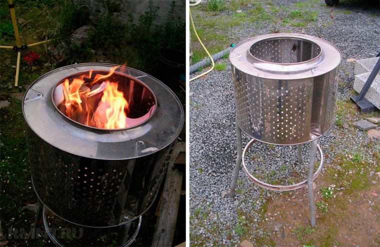 Или можно превратить барабан стиральной машинки в замечательный пуфик с местом хранения мелочей внутри его.