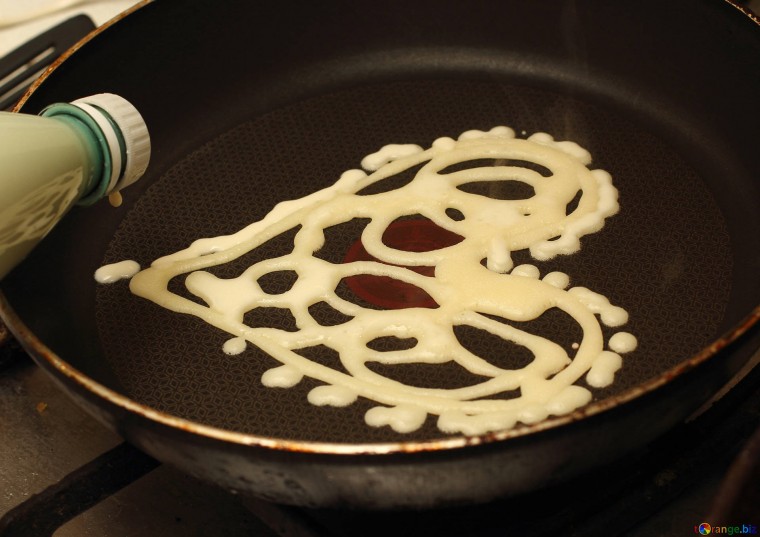 Достаточно залить тесто в бутылку и проделать в крышке дырочку, чтобы удобно наливать на сковородку.