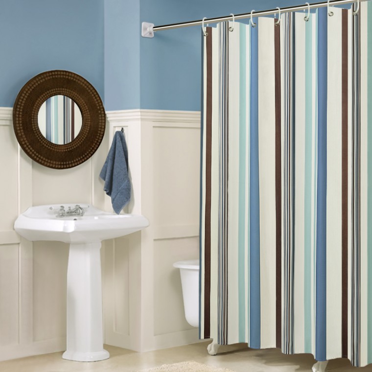 Старая шторка для ванной будет выглядеть, как из магазина, если все грязные участки и даже места с желтизной и плесенью промыть раствором, состоящим в равных частях из перекиси водорода и воды.