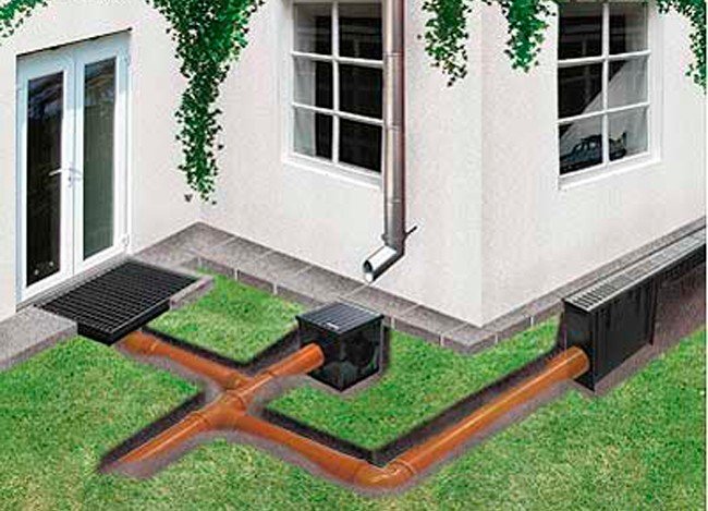 Эти элементы должны быть установлены в самых низких местах участка, под водосточными трубами крыши дома и перед входом в него.