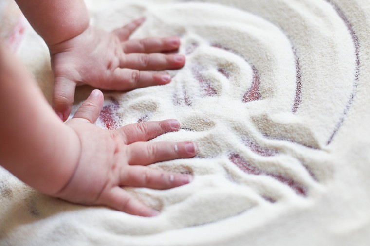 20. Пусть малыш сядет в свой стульчик, насыпьте ему на столик муку - пусть "рисует" пальчиком, палочкой, кисточкой.