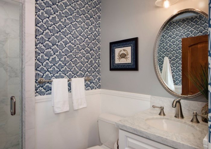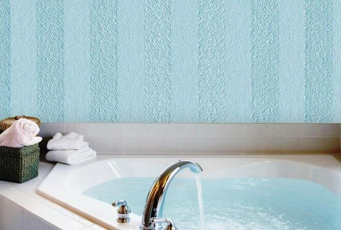 Говоря об отделке ванной комнаты, мы обычно подразумеваем плитку, керамогранит, даже краску, но никогда — обои. А ведь обои финансово куда выгоднее плитки. Даже те, которые спокойно выдерживают влагу.