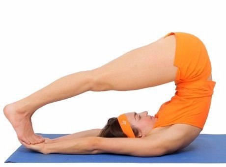 Поза плуга. Лежа на спине переведите руки через стороны за голову. Сделайте несколько перекатов на спине и перенесите ноги за голову, поставив стопы в ладони. Соедините пятки. Тяните круглую спину в одну сторону, а пятки и таз - другую. Чтобы заработало все тело, нужно создать в нем равное натяжение: руки, ноги, спина натянуты одинаково. Утром это бывает непросто, особенно, если вы спите на боку или на мягкой кровати. Затекшие мышцы поутру будут болеть. Если ноги не достают до пола, поставьте позади себя стул и опускайте ноги на стул.