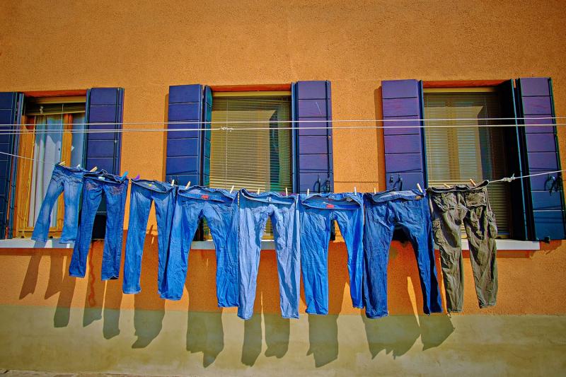 5. Когда высушить нужно одежду из плотной ткани, например, джинсы, требуются дополнительные усилия. Вначале заворачиваем вещь в махровое полотенце и скручиваем по принципу жгута. Когда полотенце основательно намокло, повторите процедуру с другим сухим полотенцем. Так мы уберем лишнюю влагу из ткани. А для окончательной сушки подойдет любой из выше описанных способов.