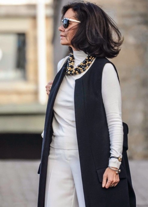 Стиль в одежде для женщин маленького роста после 40 может учесть актуальность монохромного приема. Комбинация в одном образе родственных оттенков органично вписывается в различную стилистику аутфитов и великолепно вытягивает силуэт.