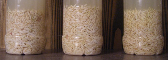 В пол-литровую банку засыпают 2 столовые ложки риса, заливают водой и оставляют на сутки.