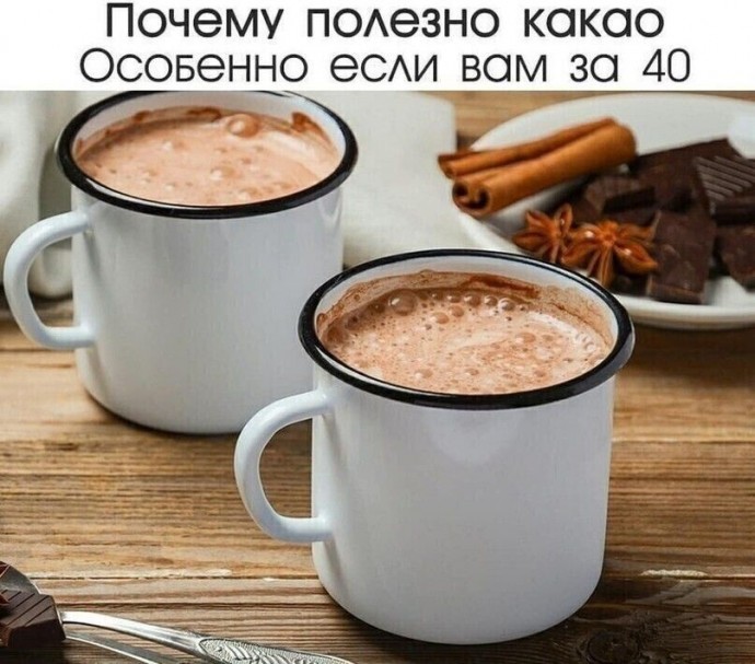 Какао является мощным антиоксидантом и очень богат магнием и витаминами. Что делает его необыкновенно полезным, особенно если вы старше 40 лет, то он вам просто необходим!