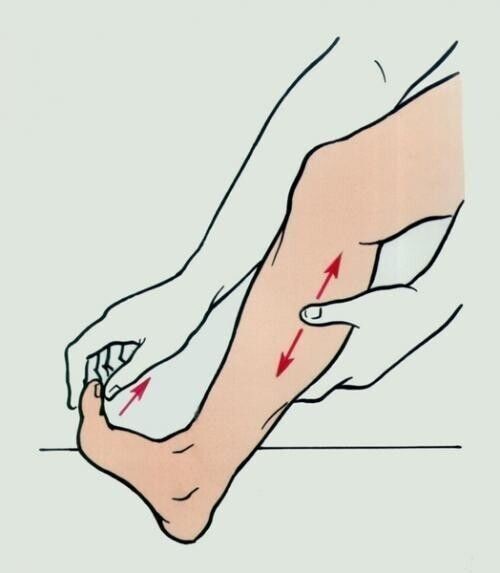 - Постарайтесь захватить рукой пальцы стопы и по возможности резко потяните носок ноги на себя. Не смотря на боль при судорогах в ногах, старайтесь удержать стопу в этом положении.