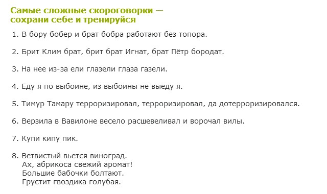 - Два дровосека, два дроворуба, Два дровокола отточили топоры, Топоры остры-то до поры, До поры остры топоры, до времени.