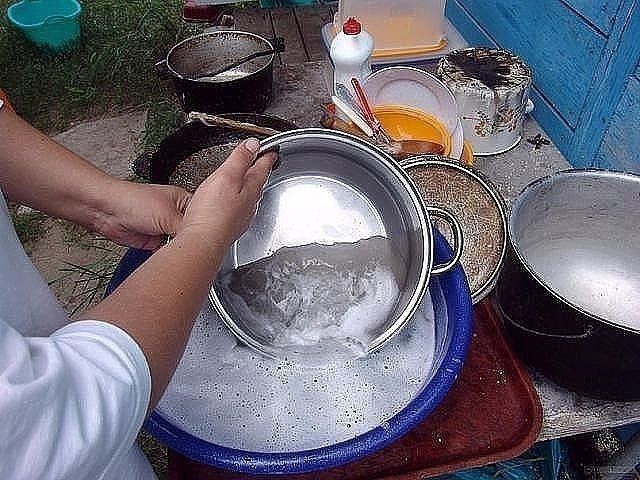 После этого берем жесткую губку, хорошенько трем и смываем всё.