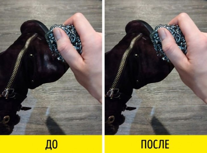 Обычная губка для посуды поможет впитать остатки воды, если ваша обувь промокла.