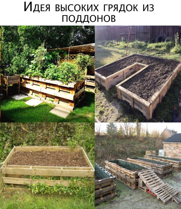 Если у вас на даче есть строительные поддоны, оставшийся после длительной стройки, то не спешите списывать их. Вот такие грядочки могут быть сделаны своими руками.