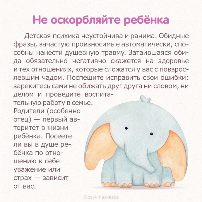 Позитивное воспитание базируется на любви к ребёнку и уважении к родителю или воспитателю. Иногда, чтобы воспитать полноценного члена общества, родителям сначала приходится перевоспитывать самих себя. Не существует правил, подходящих для воспитания всех без исключения детей. Но существуют приёмы, которых нужно избегать каждому родителю, так как они приносят не пользу, а вред в формировании личности ребёнка.Подсказки-советы направлены на то, чтобы выявить разрушительные воспитательные приёмы, отказаться от них и вооружиться позитивными подходами, которые помогут сохранить во взаимоотношениях «ребёнок — взрослый» искренность и доверие.