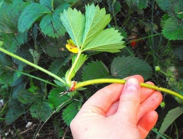 Можно удалить только обмякшие, нездоровые листья или же полностью срезать всю клубничную листву. Убирая лишние усы, оставляйте на размножение усики со здоровыми розетками, первыми по счету от куста. Эти розетки прикопайте в землю, чтобы они дали корни. В том случае, если размножение клубники усами вас не интересует, без сожалений удаляйте все имеющиеся усы с кустов. Оставлять их незачем – загущение усов только приведет к снижению урожая ягод.