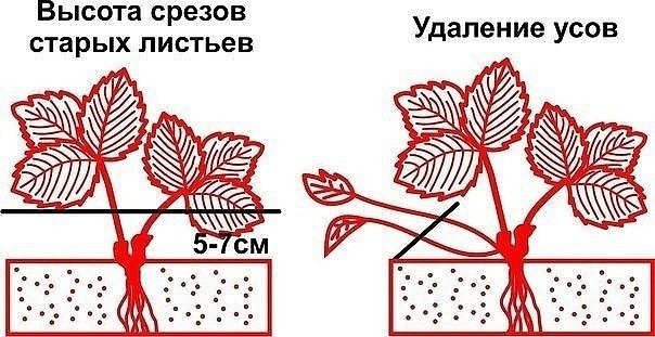 - В борьбе с вредителями и болезнями обрезка бесполезна, поскольку с удаляемых клубничных листиков мелкие вредители и грибные споры падают на землю, сохраняются в почве и спокойно переходят в следующем сезоне на новые листики.