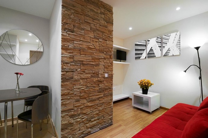 Если комната оформлена в таких стилях, как лофт, кантри, эко, минимализм, вполне можно внедрить в интерьер каменную или кирпичную кладку. Такой декор отлично сочетается с любой облицовкой стен. Если выступающий элемент небольшой, откажитесь от массивных элементов декора. Отдайте предпочтение узкой глянцевой плитке или мелким фракциям камней.