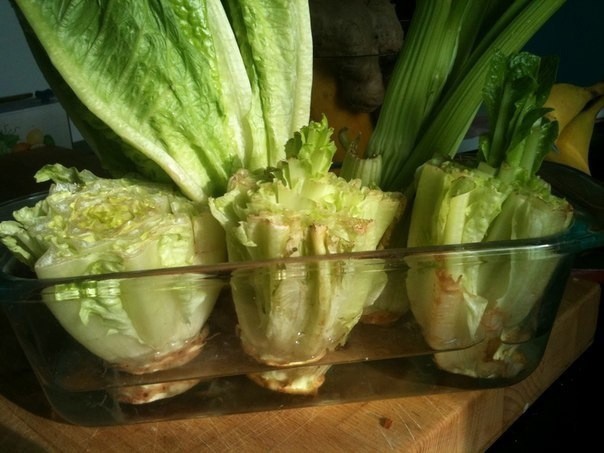 Бьюсь об заклад, что многие из вас выбрасывают "пеньки" от салата. До недавнего времени я тоже! Затем я наткнулась на интересный пост, как вырастить зелень. Это просто: сохранить мелкие листочки в середине от салата и поставить в небольшое количество воды (около 2 см). Меняйте воду каждый день. Салат будет расти невероятно быстро. На фото слева срезан сегодня, средний вчера и справа, позавчера.Это может быть не только салат ромэн, но и другой листовой. Этот метод может также использоваться и с сельдереем.