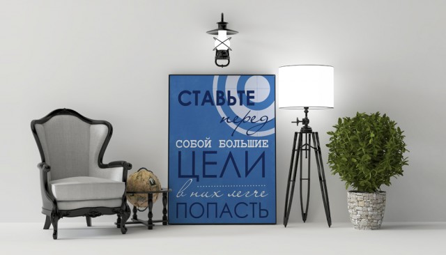 В последнее время стало очень популярно украшать квартиры и офисы дизайнерскими плакатами, на которых написаны мотивирующие фразы.