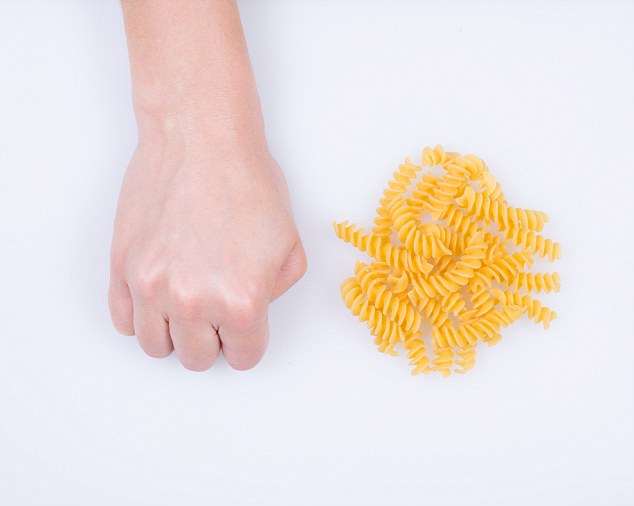 Такое количество макаронных изделий кажется совсем небольшим, но макароны увеличатся в размере при приготовлении. В этой порции содержится 75 грамм и 219 калорий. Порция неприготовленного риса также должна составлять размер кулака.