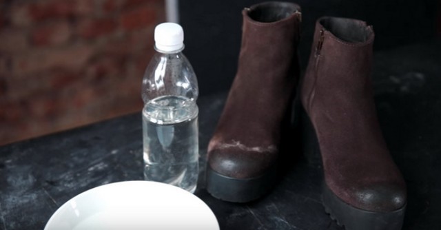 Солевые разводы с замшевой обуви вывести очень сложно, но на помощь придет данный совет. Приготовьте раствор из уксуса и воды (1:2) и протрите им пострадавшую кожу. Просушите сухой тканью, при необходимости процедуру повторите.