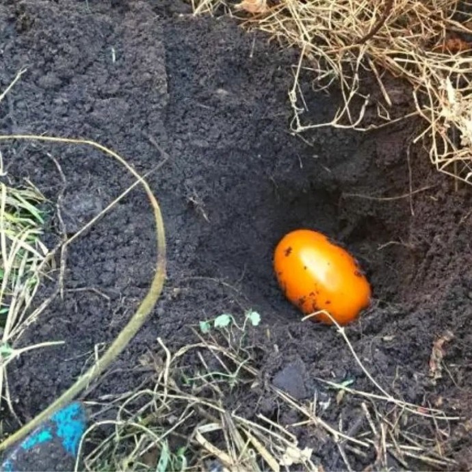 Сажаем томаты под зиму — прямо целыми помидорами Звучит странно… но работает. Да-да, вы не ослышались: целые помидоры — в землю осенью, а весной — дружные всходы будущего урожая. Как это сделать правильно? 1. В конце октября — начале ноября, когда уже прихватит лёгким морозцем, выкопайте лунки глубиной 15–20 см. 2. В каждую положите по одной спелой помидорине — целиком, с мякотью и семенами 3. Засыпьте землёй так, чтобы сверху остался слой около 10 см, слегка утрам...