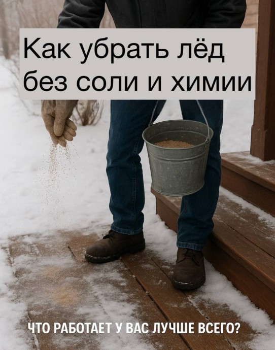 Как убрать наледь с крыльца и дорожек без химии Зимой скользкие ступеньки — частая проблема, но сыпать соль не всегда безопасно. Она разрушает бетон и портит обувь. Есть более экологичный и мягкий способ, которым пользуются дворники в Скандинавии — и он доступен каждому. Вот что работает лучше соли: Пищевая сода + песок (1:1) — смесь не только растапливает лёд, но и делает поверхность менее скользкой. Зола — старинный способ, который используют в деревнях. Работает благода...